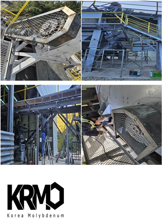 한편, 골제라인의 벨트 컨베이어(Belt conveyor)의 바닥철망(EX-MATAL)과 사각파이프로 제작된 외부난간지지대는 별도로 페인트 도색작업을 하였습니다.