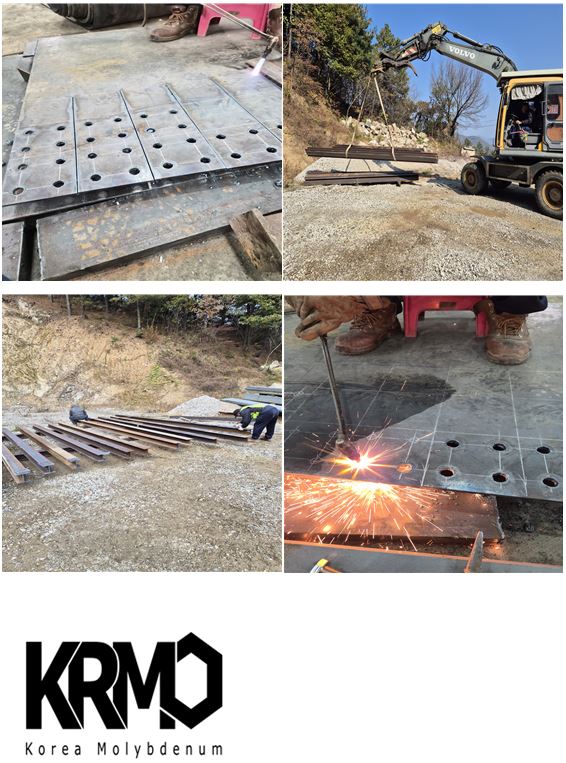 외부 지반정리를 실시하였고 굴진 이후 안쪽 상부 천장 및 내벽에 보강재로 사용될 H빔을 가져와서 그에 맞게 재단하여 절단하였고, H빔 고정에 사용될 베이스판도 자체적으로 제작하였습니다.